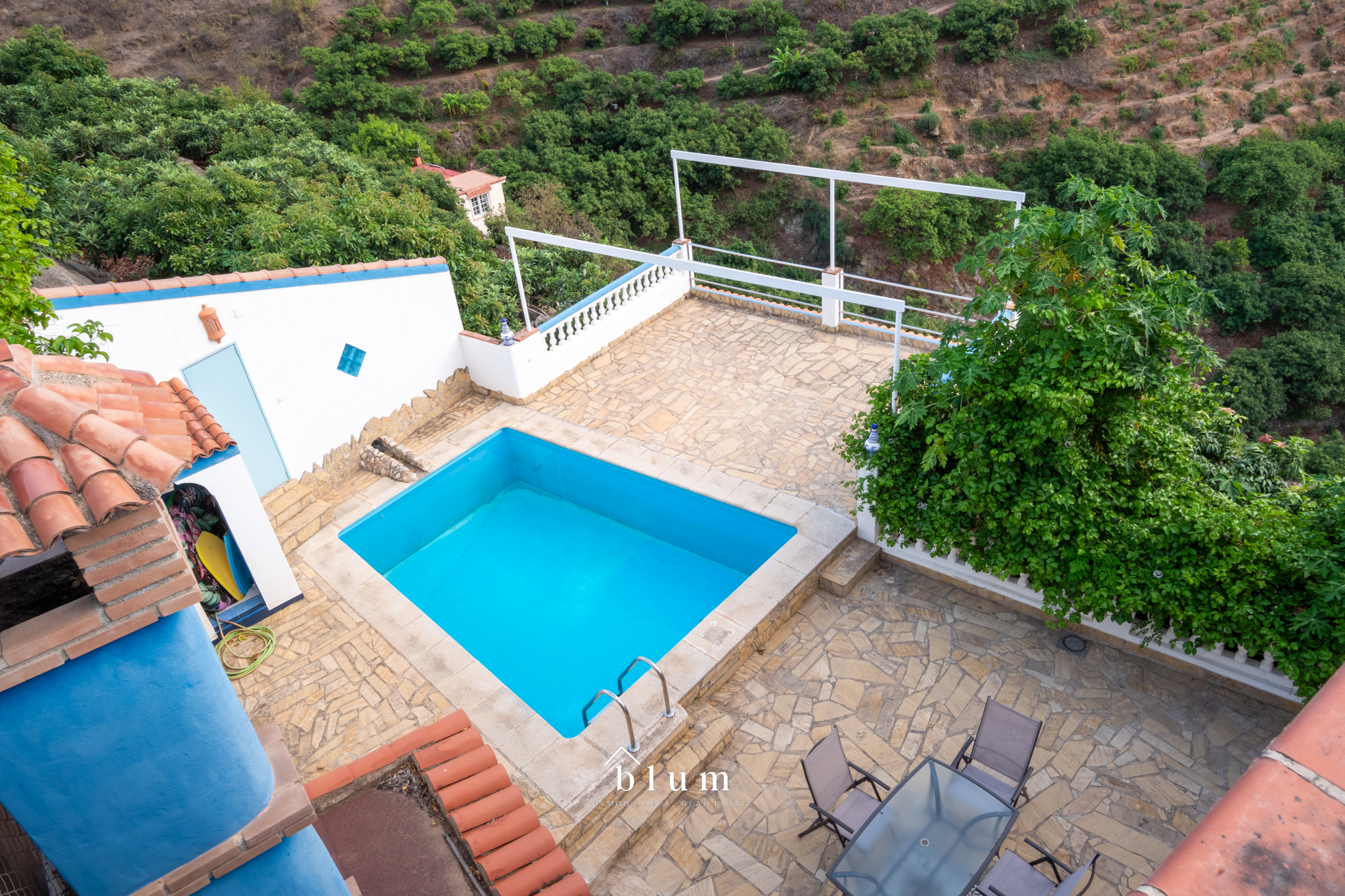 Frente a la casa de la planta de arriba, encontramos un banal con un conjunto de árboles frutales que son perfectos para el autoabastecimiento de la propiedad y encima de la casa, el tejado se conforma como una azotea que, aunque actualmente, se usa solo para tender la ropa, podría ser utilizada como gimnasio exterior o solarium o; incluso, zona de reuniones. Ahí también hay placas solares instaladas