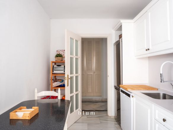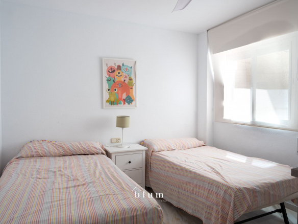 This spacious apartment offers comfort and convenience, with an ideal location close to restaurants, the beach, and other essential services. It features a large fully equipped kitchen and a laundry room, as well as two spacious renovated bathrooms, and three bedrooms. The Nordic-style furnished living room includes a smart TV, dining area, and a terrace with total privacy and sea views. Enjoy the Wi-Fi connection and the convenience of having a parking space in the same building.