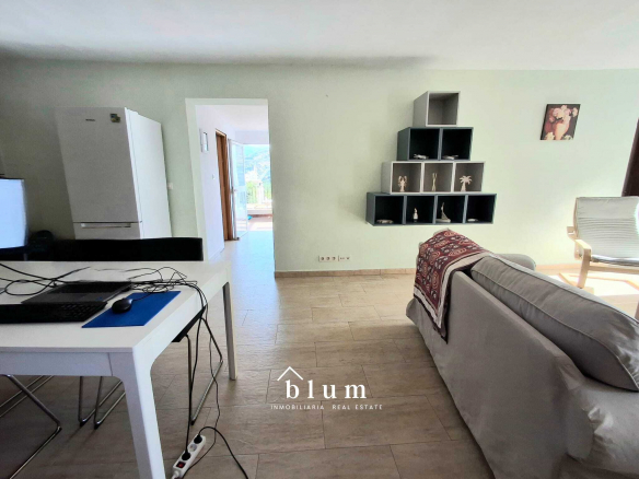Desde el salón se accede a una terraza comedor, donde el tiempo parece detenerse entre el murmullo del campo y las vistas a las montañas. El apartamento cuenta con dos dormitorios, un cuarto de baño completo y un balconcito exterior donde se ubica el tendedero.