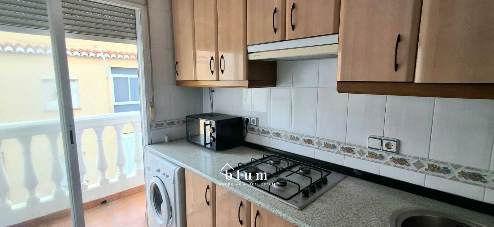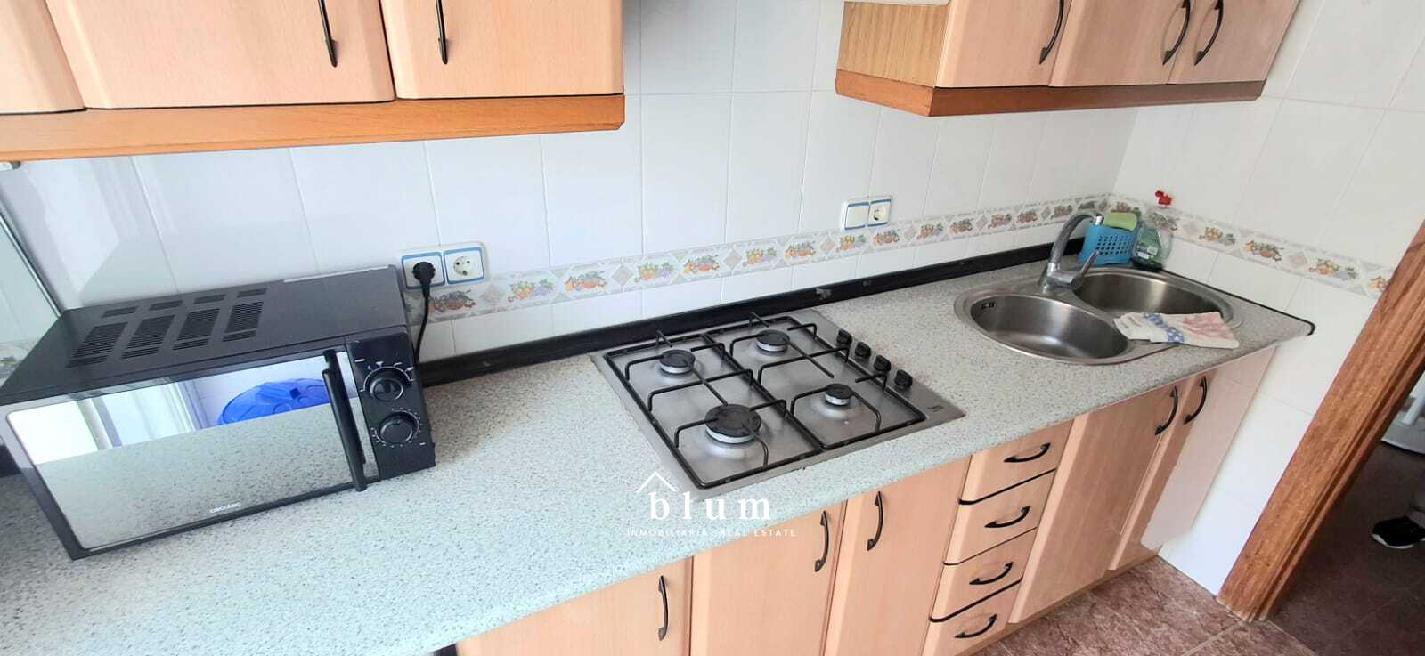 Ahí os ofrecemos este bonito y funcional piso de 1 dormitorio en alquiler para todo el año. Se encuentra en un edificio con solo 3 vecinos y se sitúa en una 2 planta sin ascensor. A la entrada, justo a la izquierda encontramos el cuarto de baño que se compone de lavabo, bañera y wc y al lado del mismo el único dormitorio de la vivienda que es amplio y muy luminoso. El amplio pasillo que lleva hasta el salón comedor tiene a la izquierda el acceso a la cocina que está equipada con mucho espacio de almacenamiento, microondas, nevera, lavadora, termo y hornilla a gas
