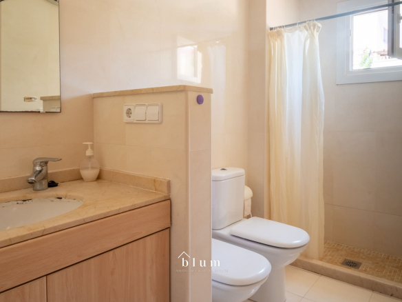 Répartie sur trois étages, la propriété allie à la perfection espace, confort et style méditerranéen. Elle comprend quatre chambres, deux salles de bain complètes (dont une en suite) ainsi qu’un toilette d’invités avec buanderie, offrant une distribution idéale aussi bien pour une famille que pour ceux qui recherchent une résidence secondaire confortable et fonctionnelle.