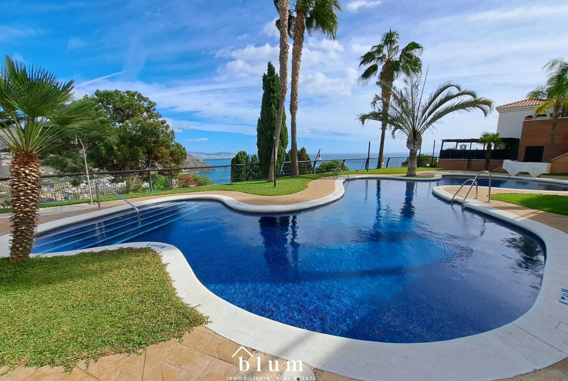 La urbanización ofrece dos espectaculares piscinas, una de ellas infinita con vistas al Mediterráneo y otra abierta durante todo el año